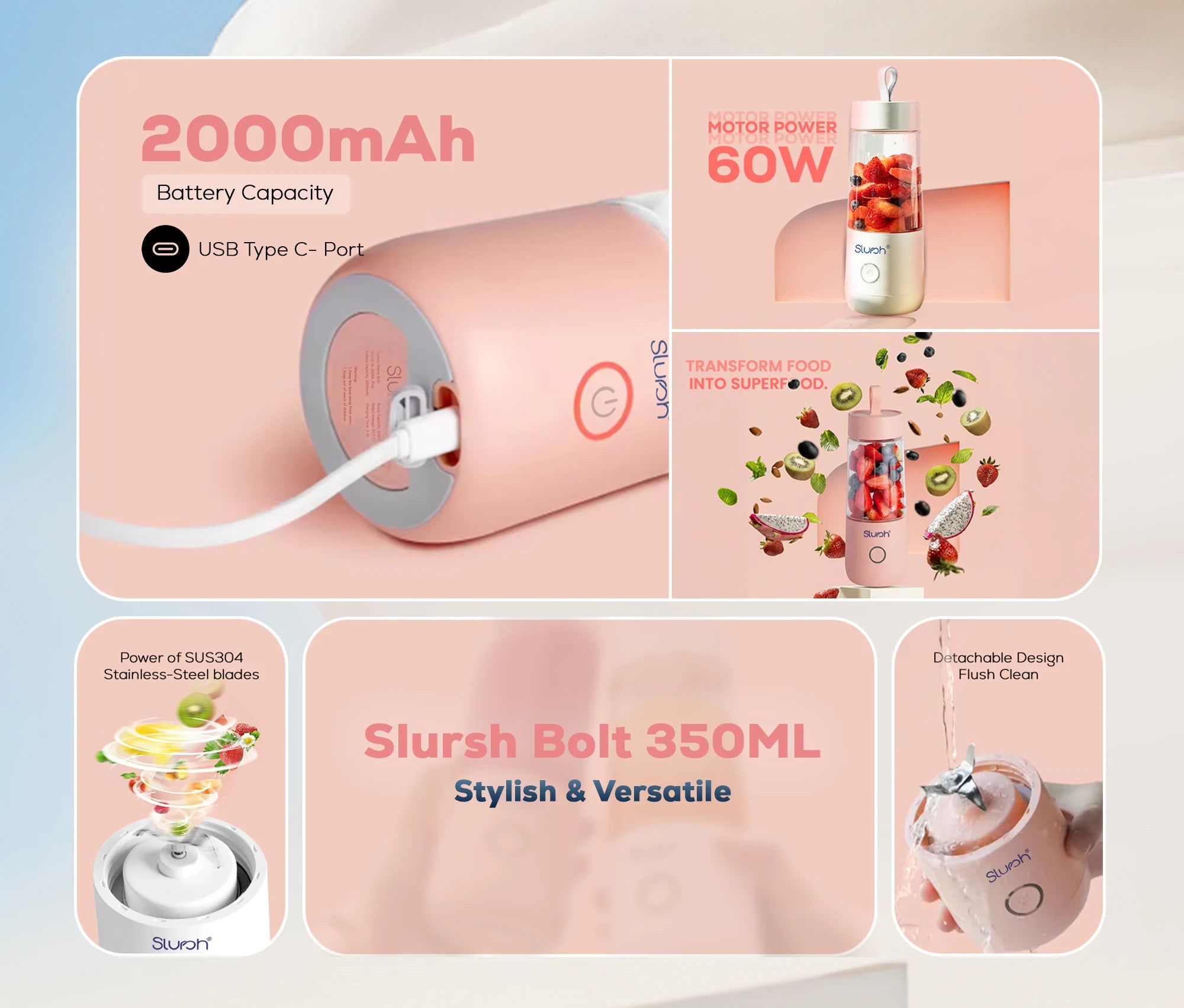 Following is a list of what you get when you order Slursh Bolt 350 ML USB Portable Blender
